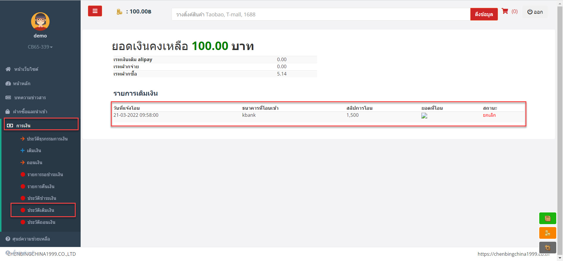 ขั้นตอนการเติมเงินก่อนสั่งสินค้าจากจีน
